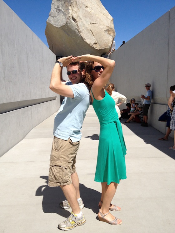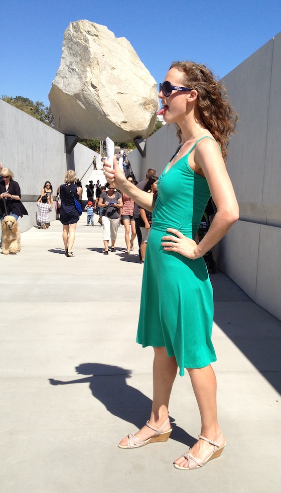 Visitors quickly discovered the “I’m holding up the rock” pose, which consists of putting your hands up in the air raise-the-roof style and having your photographer squat to alter the perspective and make it seem like the rock is resting in your palms. Two weeks later, the pose is already a classic, destined to take its place alongside other legendary L.A. photo poses, like putting your hands in Jennifer Aniston’s handprints at Grauman’s Chinese Theater, or standing in front of the silver robot impersonator at Venice Beach.